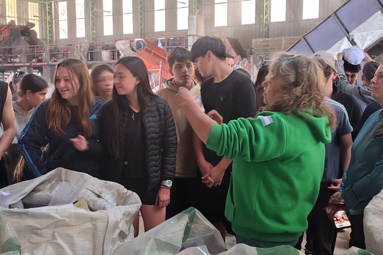 La visita fue coordinada entre los docentes y la Cooperativa para instruir a los adolescentes sobre el destino final de los residuos y generar conciencia sobre el correcto manejo desde la generación en cada hogar.